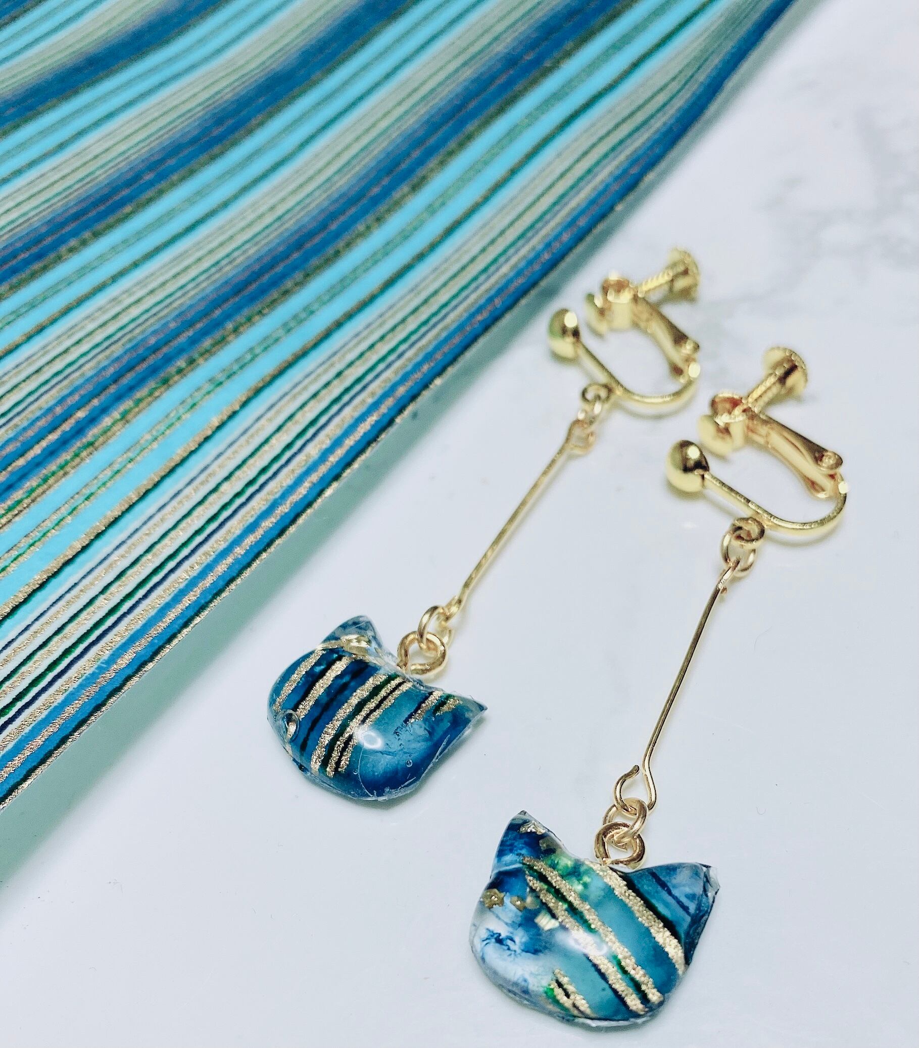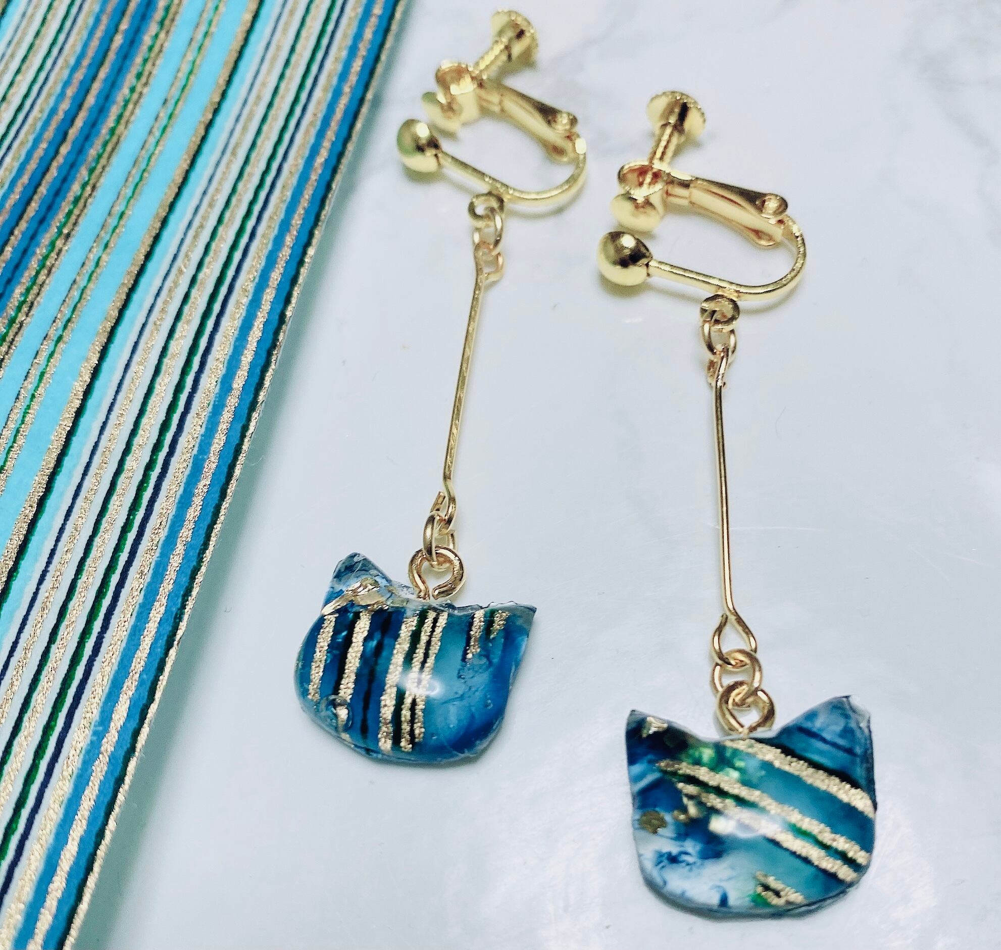 仙台七夕和紙アクセサリーねこ(イヤリング)